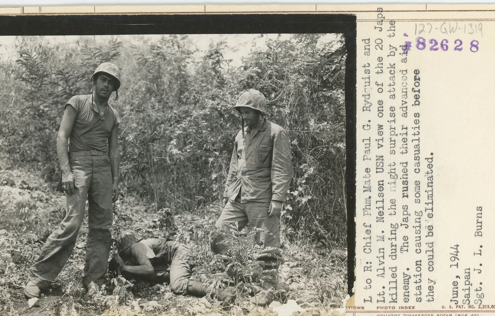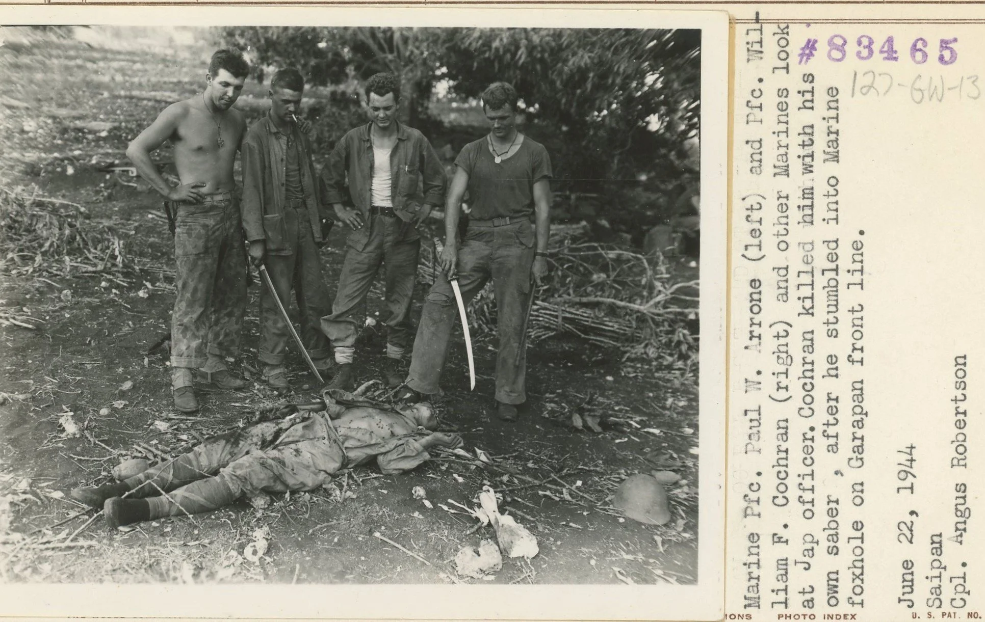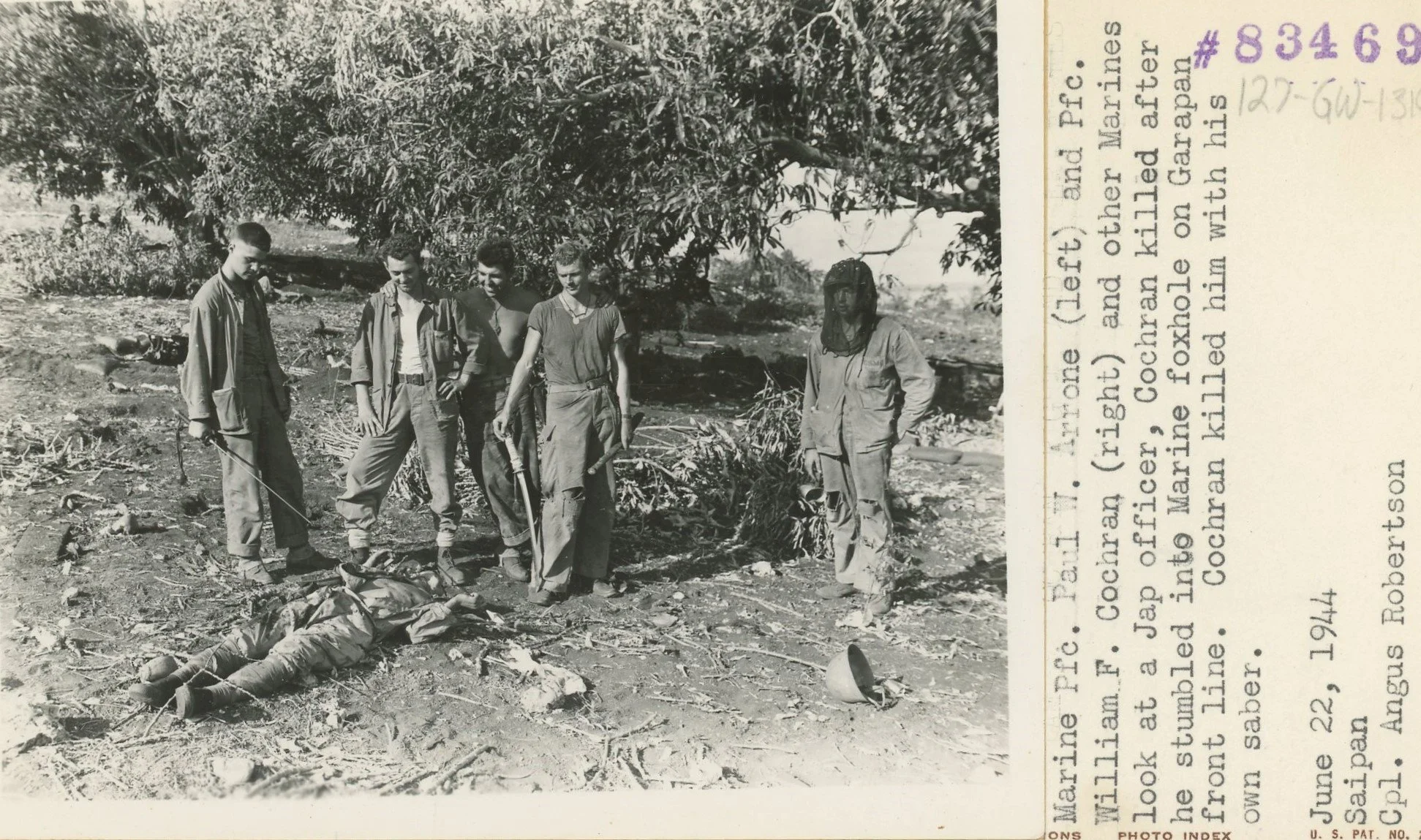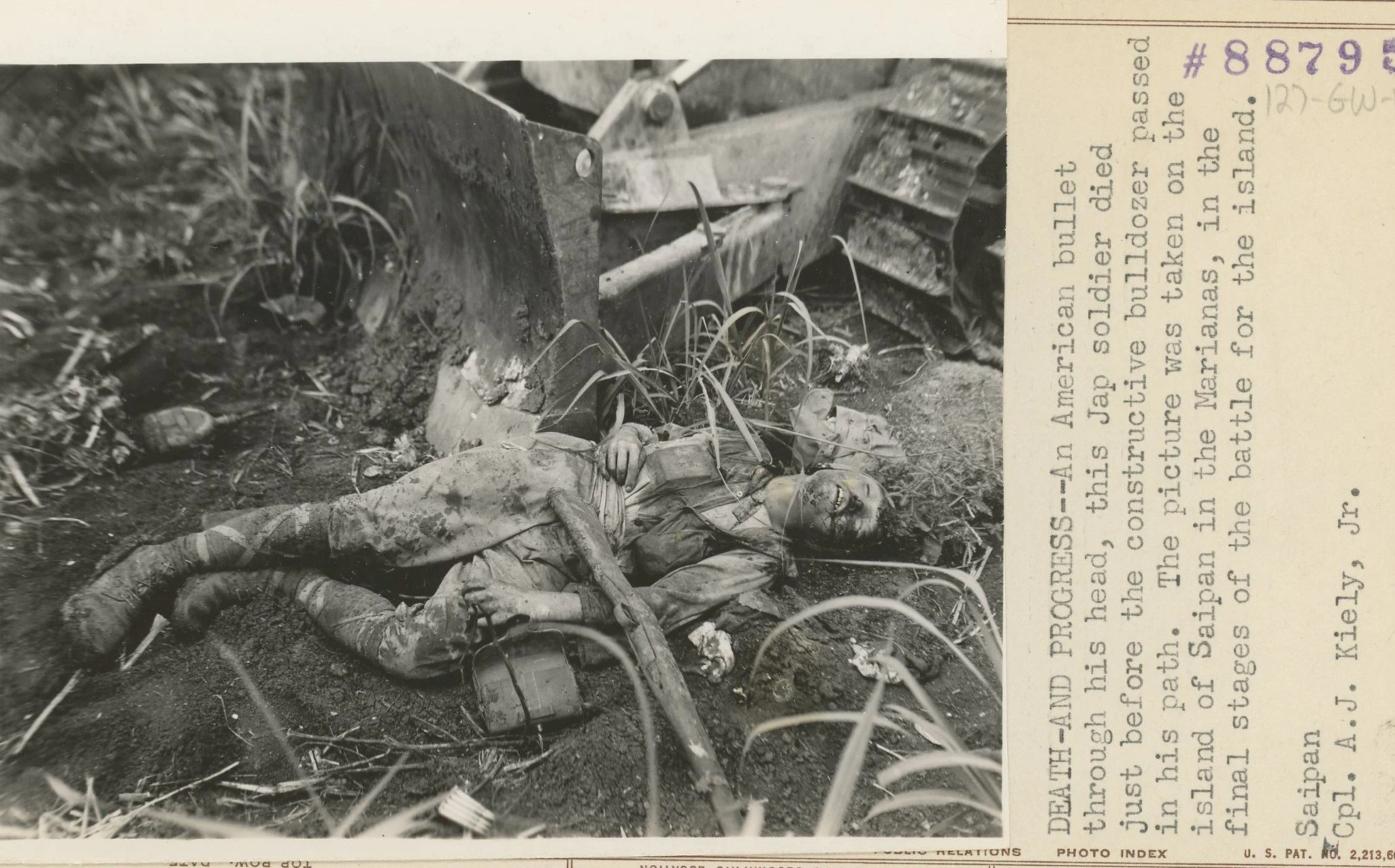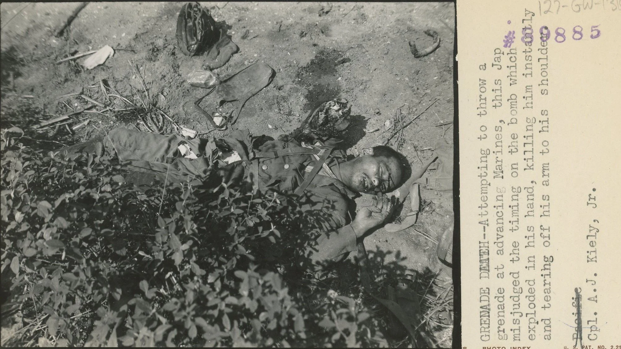 A member of the Imperial Japanese Navy killed near Garapan in 1944 is visible in the scene.