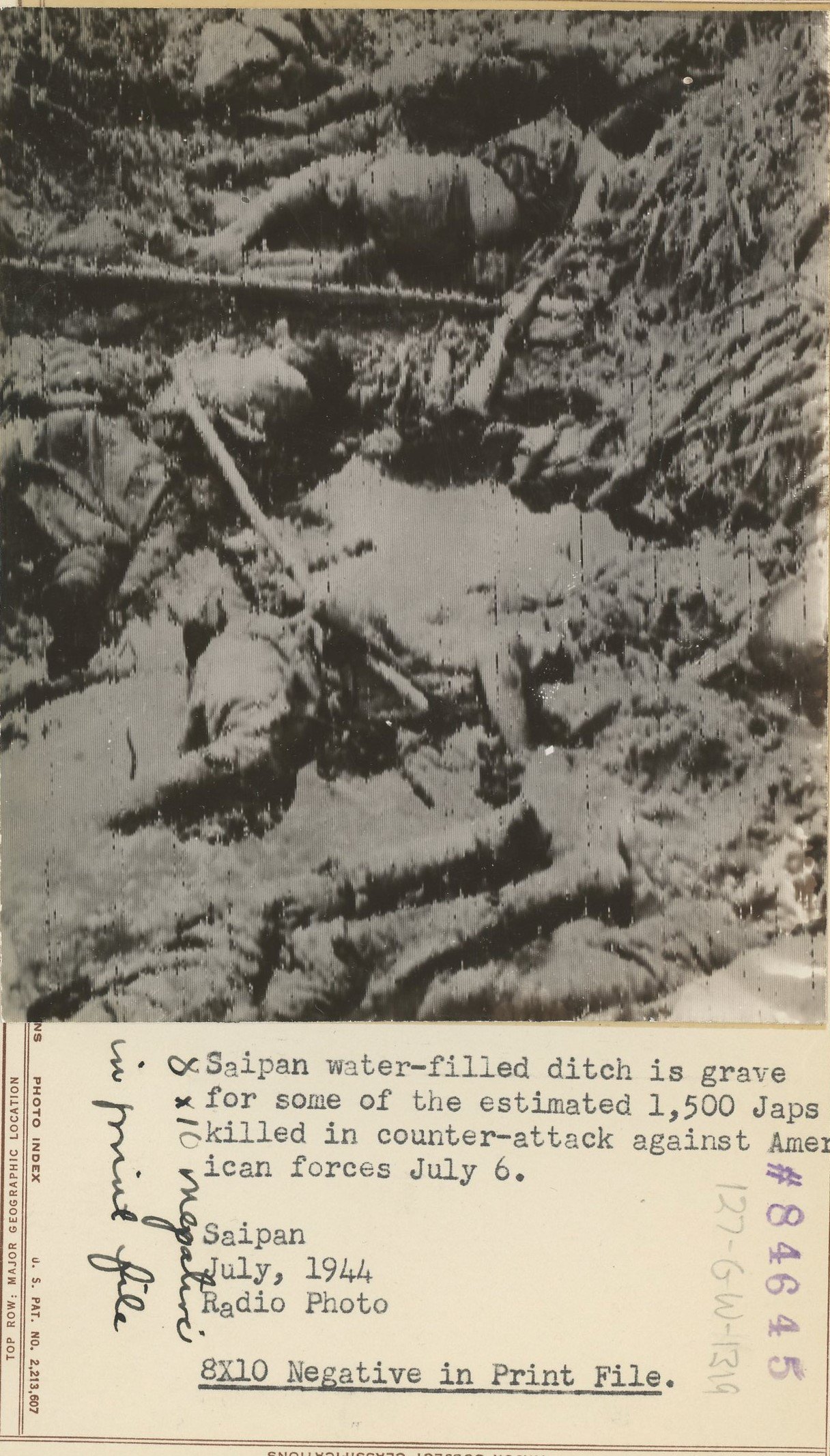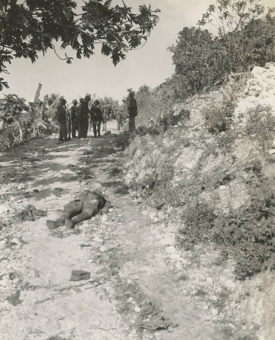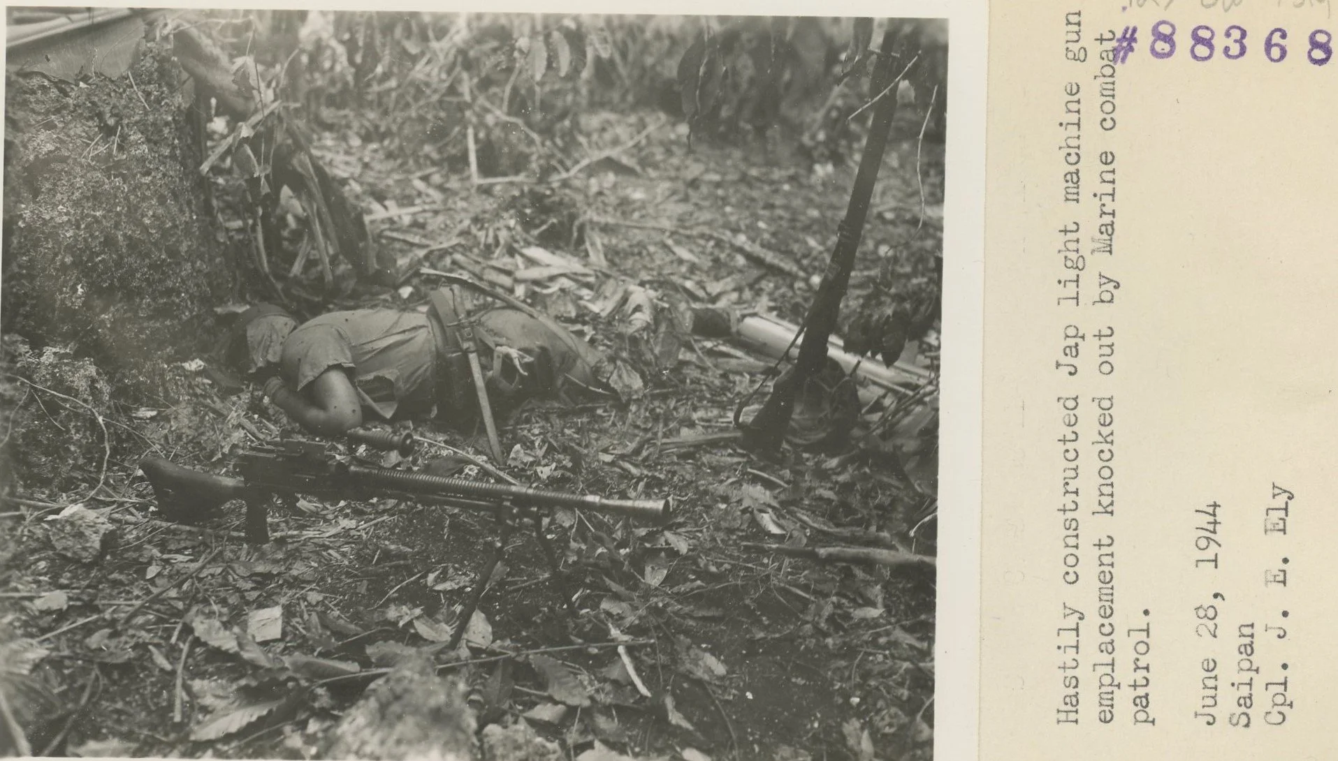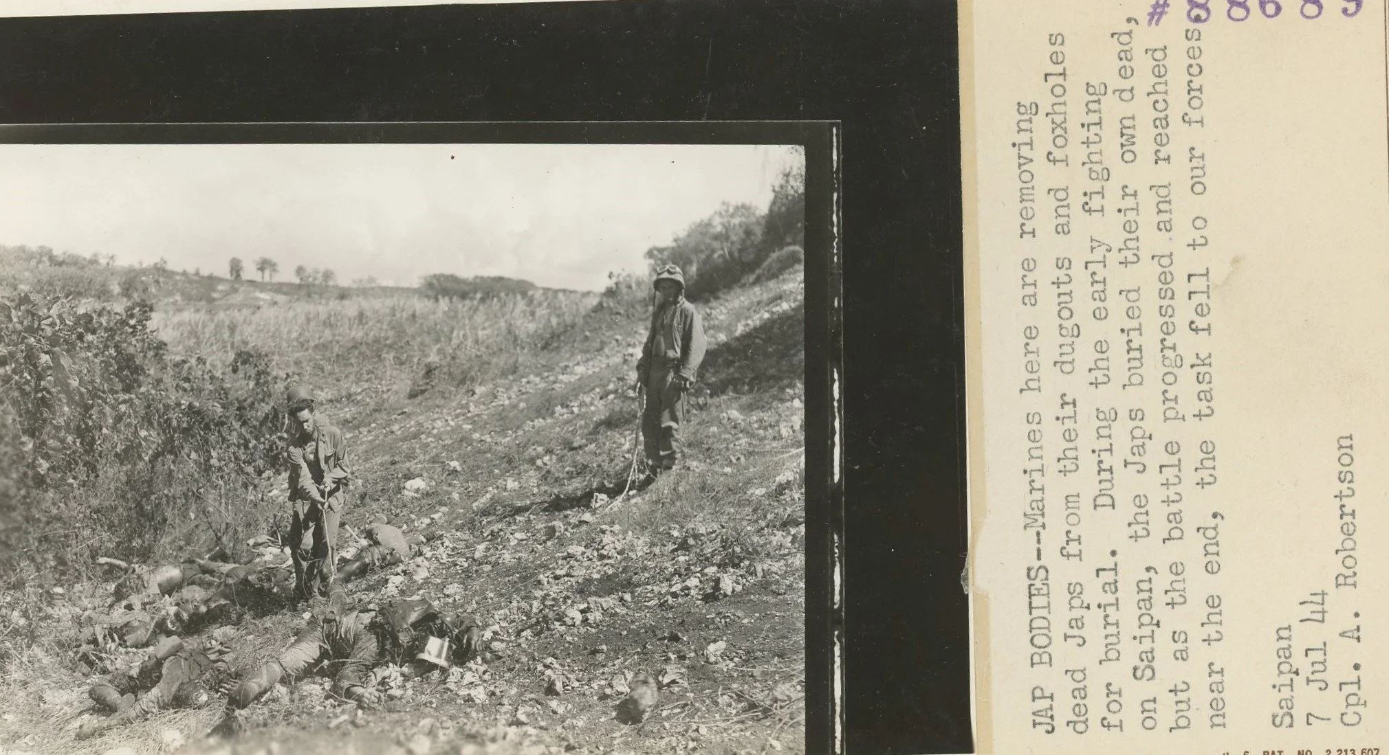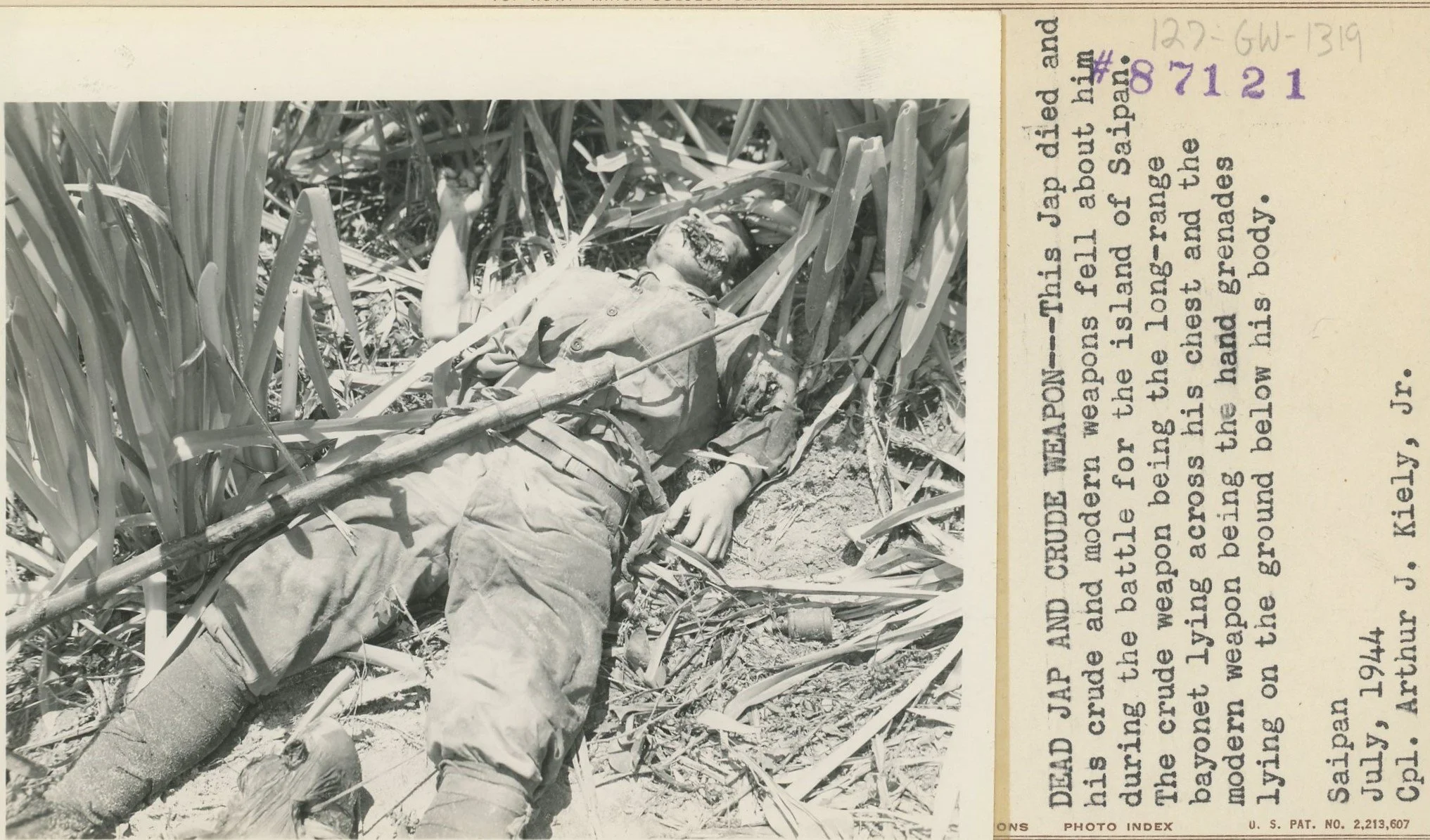 A member of the Imperial Japanese Navy killed near Garapan in 1944 is visible in the scene.