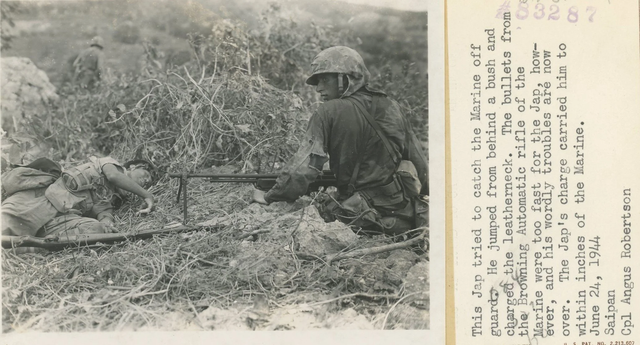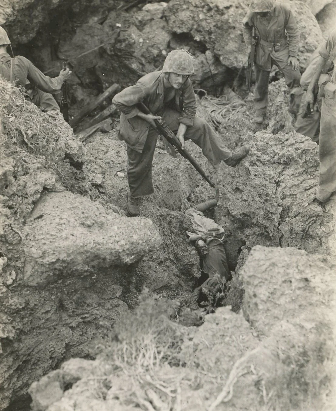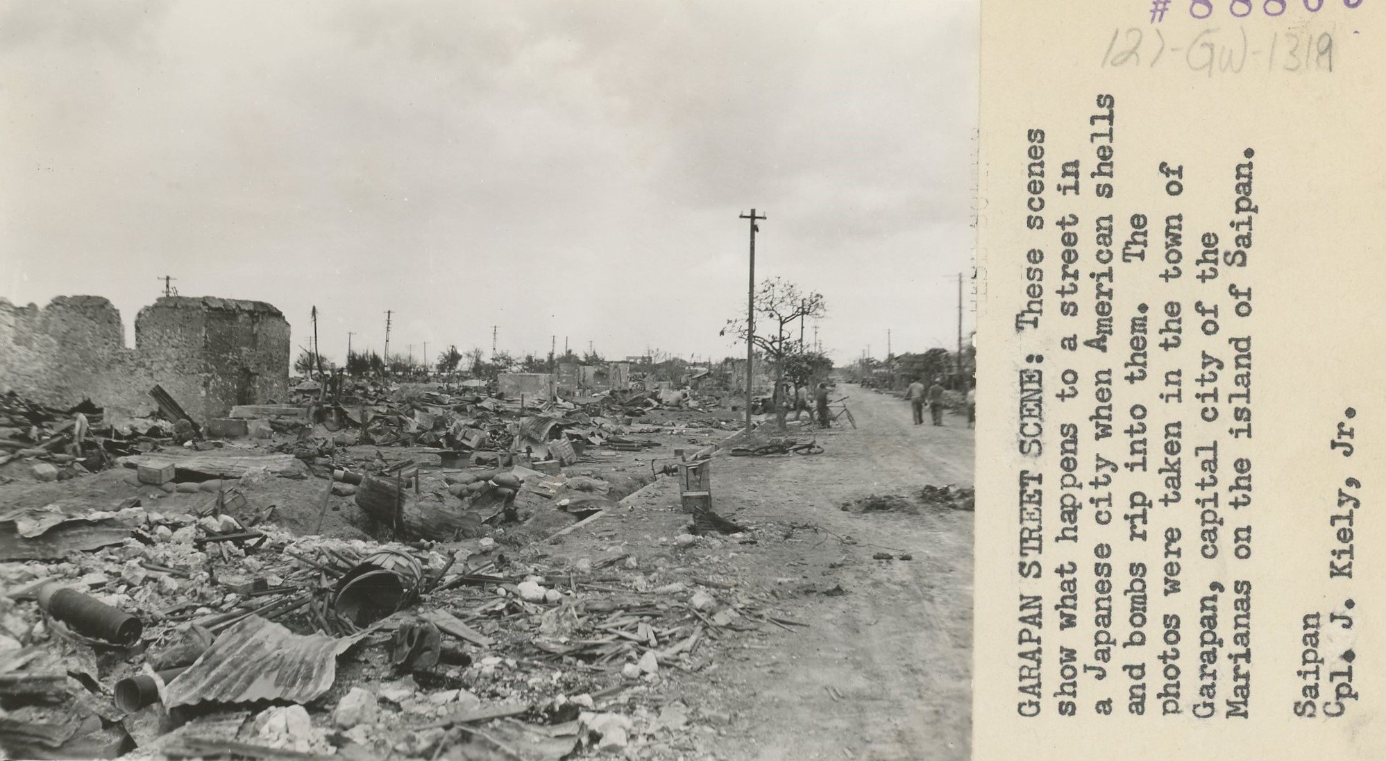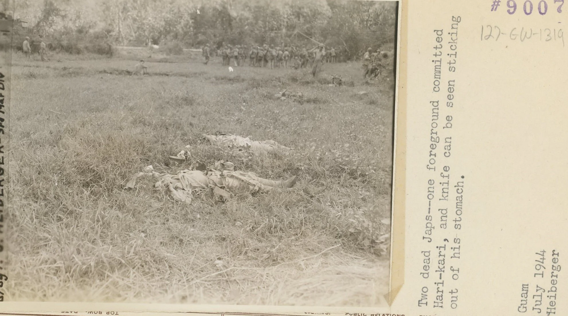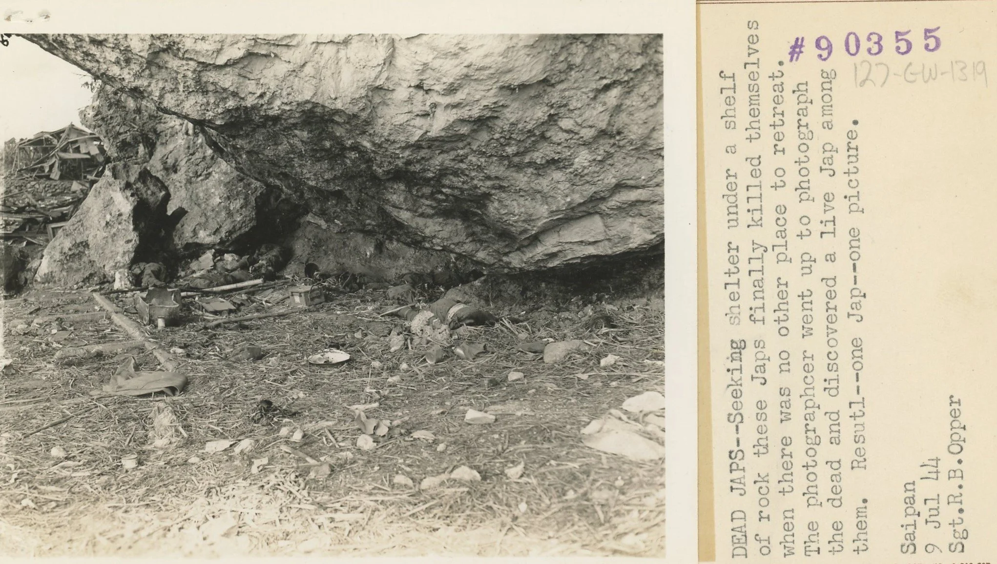 A member of the Imperial Japanese Navy killed near Garapan in 1944 is visible in the scene.