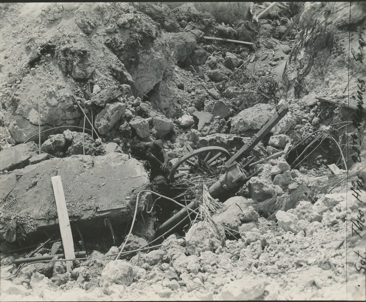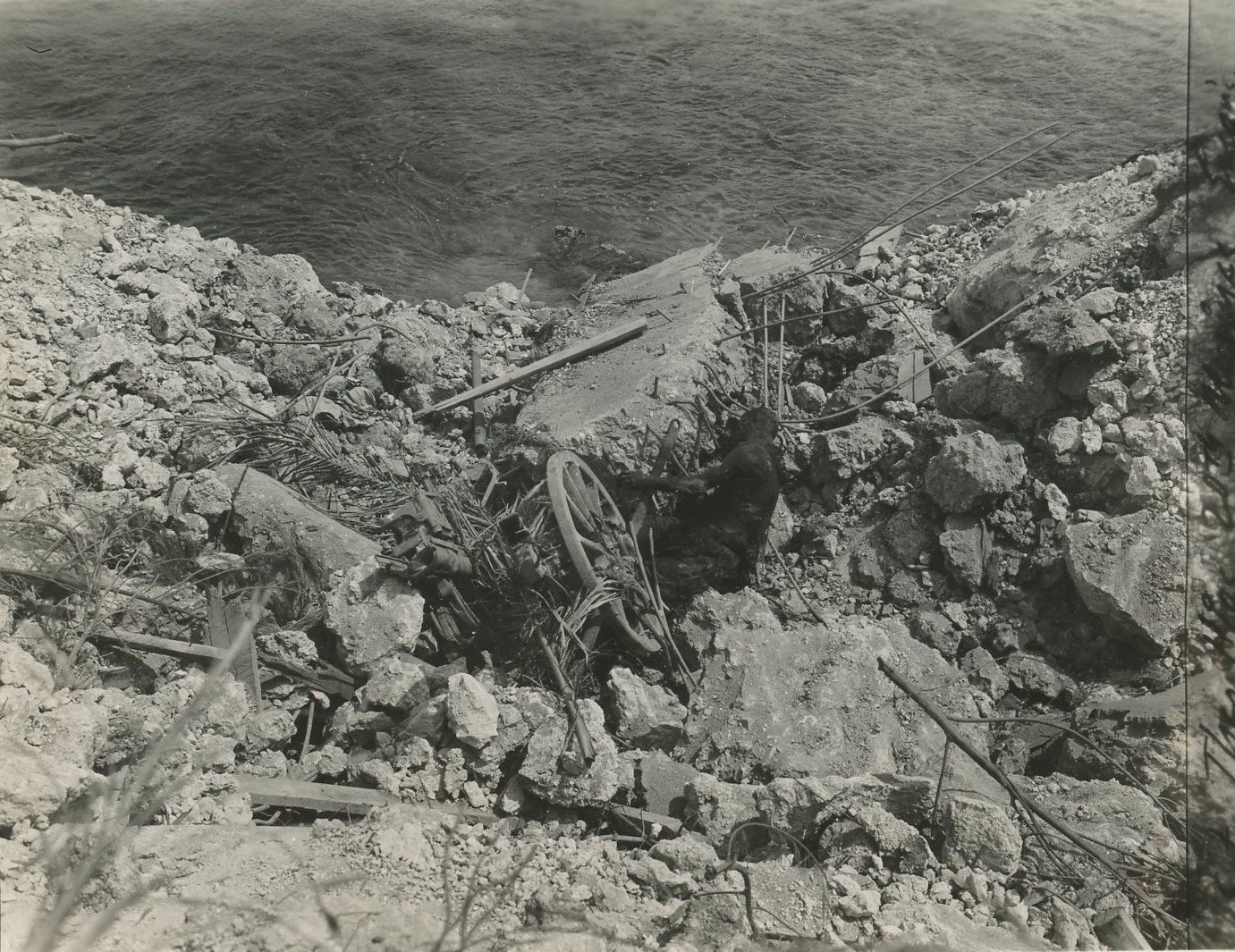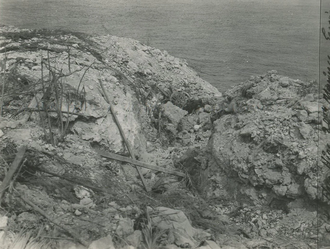 A knocked-out bunker on the beach, located at the intersection of what is today Quartermaster Road and Beach Road.